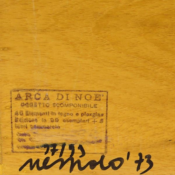 "Arca di Noè", scultura scomponibile a quaranta elementi in legno e plexiglas, 1973, es. 97/99, firmata e datata a lato.