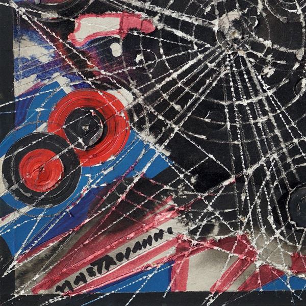"Composizione", tecnica mista su cartone, firmata in basso a sinistra, entro cornice, 35x51,5 cm.