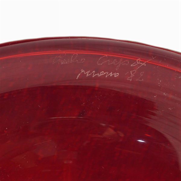 poggiante su base circolare con attacco a sfera costolata e applicazioni a caldo, h. 43 cm.