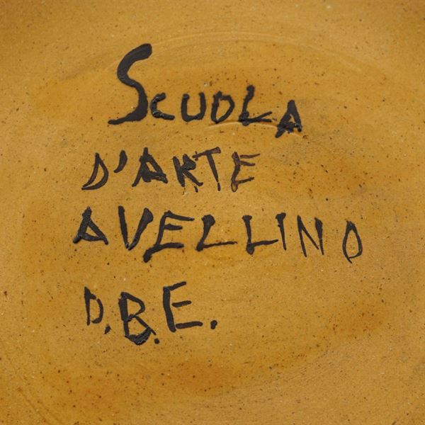 decorato a mano con i segni zodiacali, sotto la base "Scuola d' Arte Avellino, D.B.E", lievi difetti, h. 35 cm.