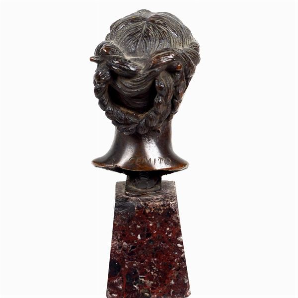 busto in bronzo brunito, poggiante su base in breccia rossa, firma "Gemito" incisa sul retro, lievi difetti, h. 16 cm.