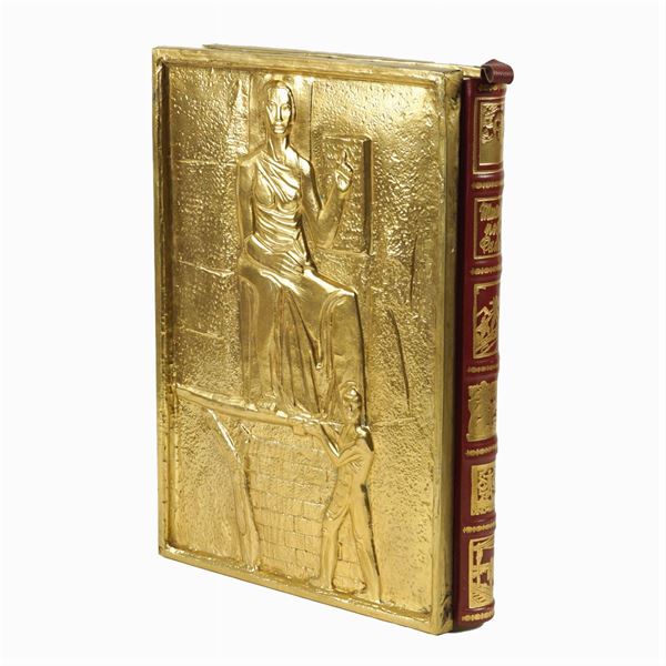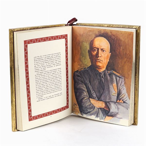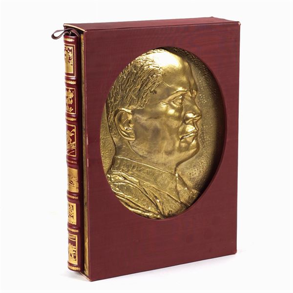 realizzato da Salvatore Dino, edizione limitata, es. 518/999, rilegatura artistica, bassorilievi in rame scolpiti e sbalzati da Antonio Cocchioni. All' interno incisioni di Ricci, Damiani, Sironi e altri; tavole a colori di Dudovich, Tafuri, Boccasile, Sironi, Prampolini, Funi e altri artisti