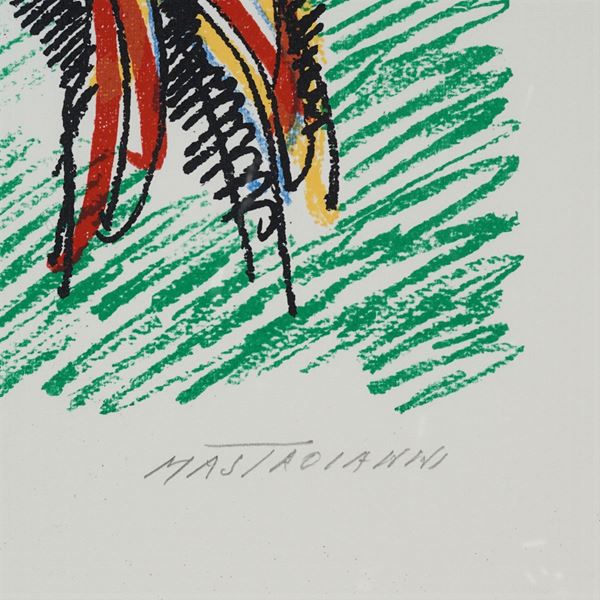 "Senza titolo", litografia a colori, es. 100/100, firma in basso a destra, entro cornice, 50x35 cm.