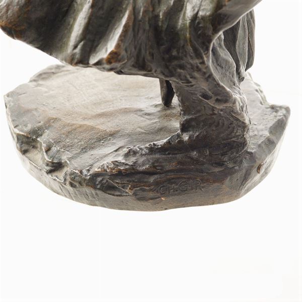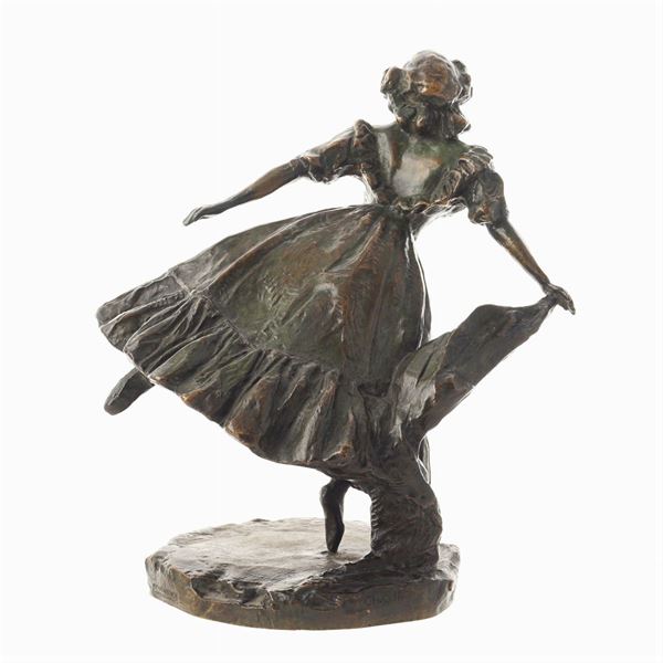 "Ballerina", scultura in bronzo patinato, firmato sulla base 'Alexis Rudier fondeur Paris', siglato 'ch.gir', h. 28 cm.
