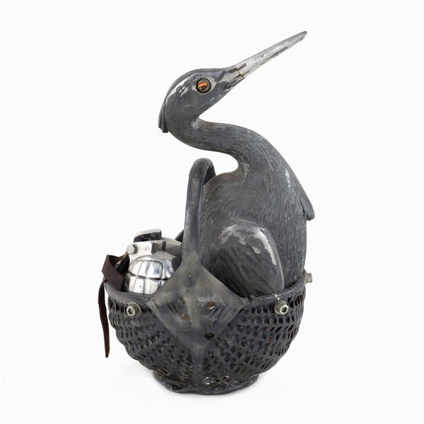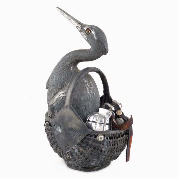 "Covare l'odio" scultura in metallo, anno 1970 circa, firma e marchio della fonderia impressi sul corpo, 34x19x17 cm.