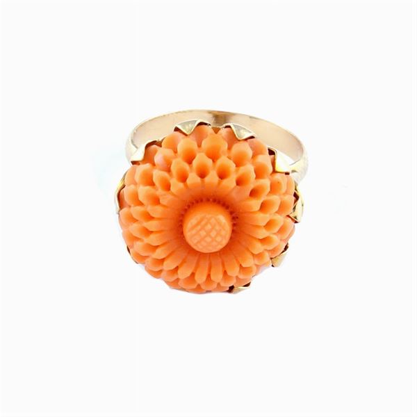 Anello in oro giallo 18kt e corallo mediterraneo