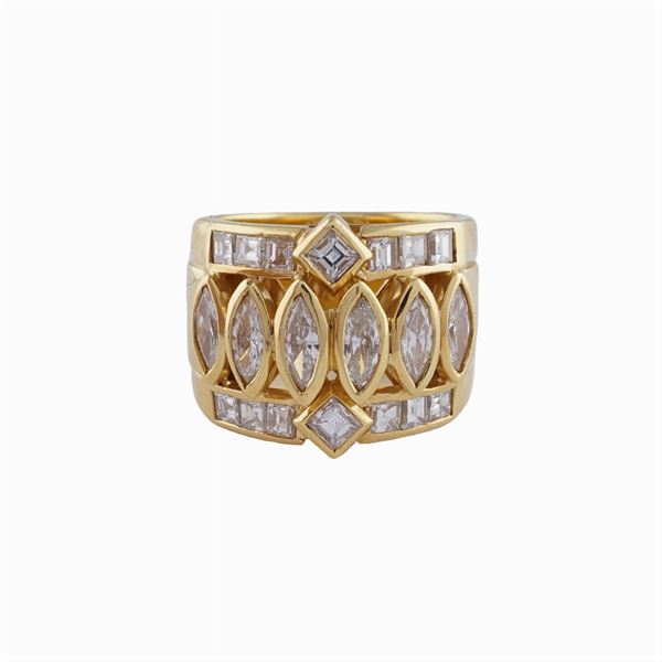 diamanti taglio marquise, baguettes e carré ct 2,80 circa, misura 14 , peso 18,5 gr.
