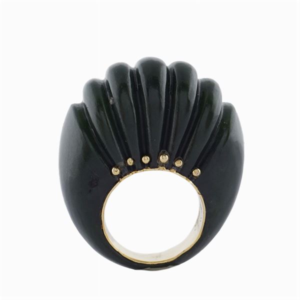 tagliata a melone e oro giallo 18kt, misura 11, peso 28 gr.