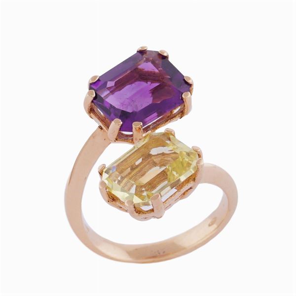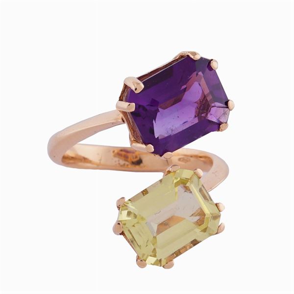 ametista e quarzo lemon taglio rettangolare a gradini, misura 15, peso 7 gr.