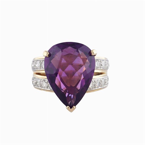 Anello in oro giallo 14kt con ametista