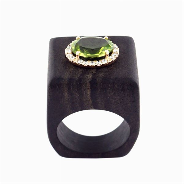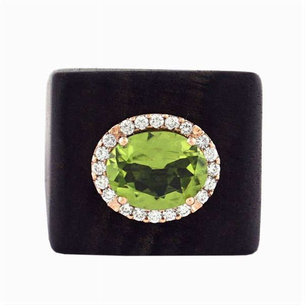taglio ovale briolet ct 2,30 circa contornato da diamanti taglio brillante ct 0,21 circa, misura 16, peso 7,5 gr.
