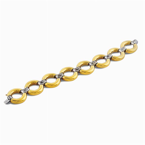 maglie circolari alternate ad elementi rettangolari in oro bianco con diamanti taglio huit-huit, lunghezza 17 cm., peso 49,5 gr.