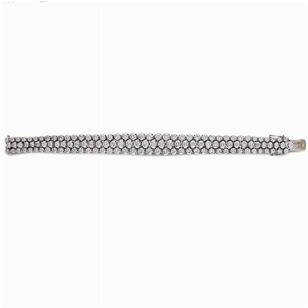 taglio brillante ct 12 circa disposti su tre file a gradazione, chiusura a scomparsa, lunghezza 7 cm., peso 39 gr.