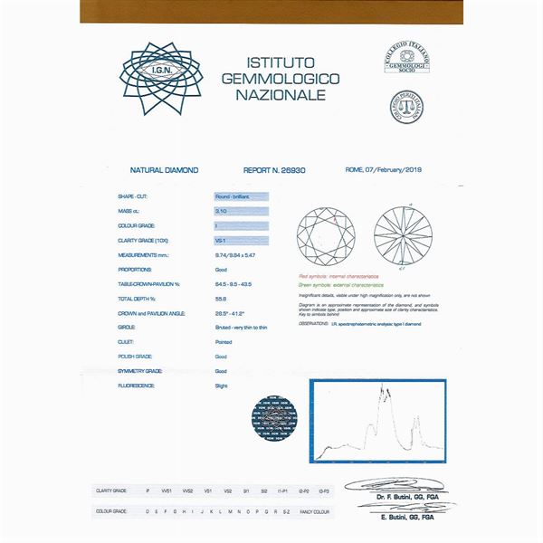 circa, colore I - purezza VS1, montato come pendente in oro bianco 18kt, completo di certificato gemmologico I.G.N n. 26930