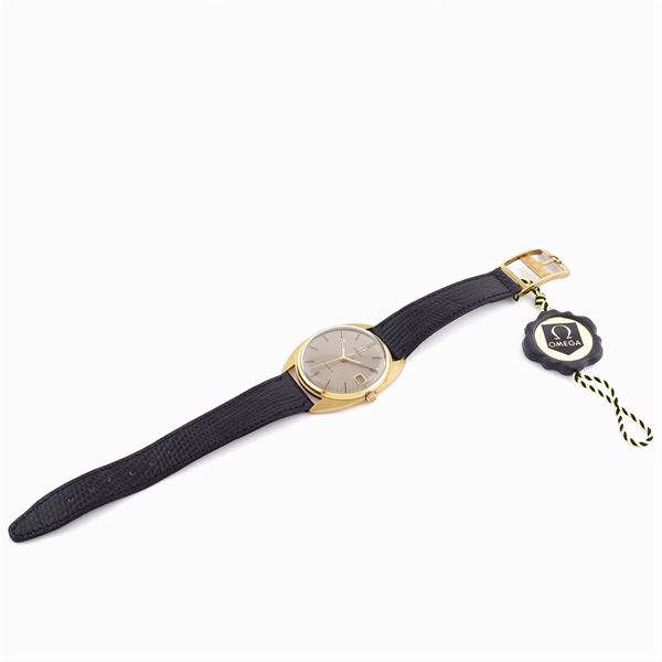 in oro giallo 18kt, cassa tonda 34 mm. - ref. 132-90001, quadrante bronzato con indici dorati, datario ore 3, movimento meccanico a carica manuale, ref. 3271/975, calibro 613, cinturino originale in pelle con fibbia placcata in oro