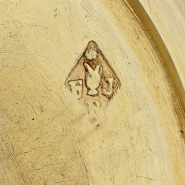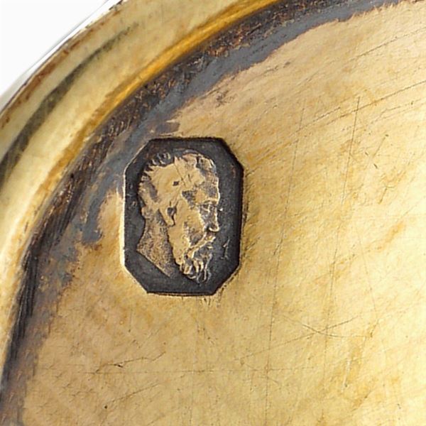 corpo inciso e cesellato con motivi vegetali, tralci di vite e palmette Impero, manici a voluta, h. 14,5 cm., peso 303 gr.