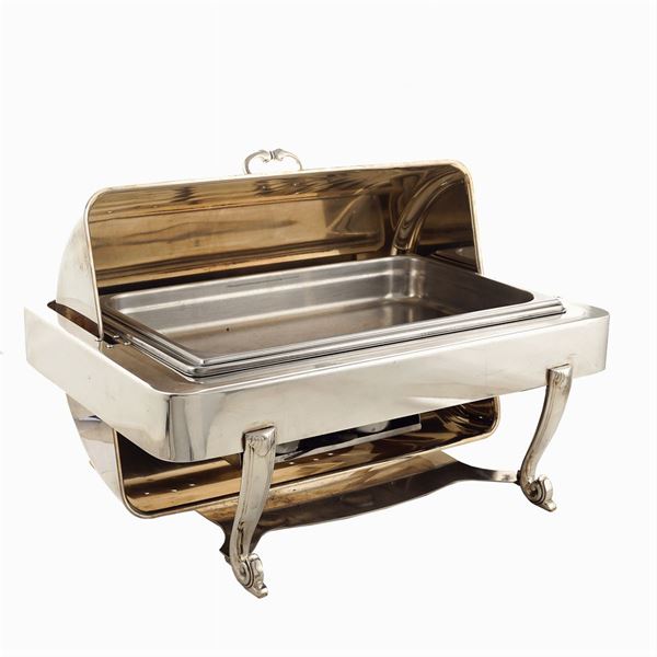 forma rettangolare a corpo liscio poggiante su quattro piedi a voluta, cupola rotante con presa a volute contrapposte, completo di forneletto, usure, 43x64x44 cm.