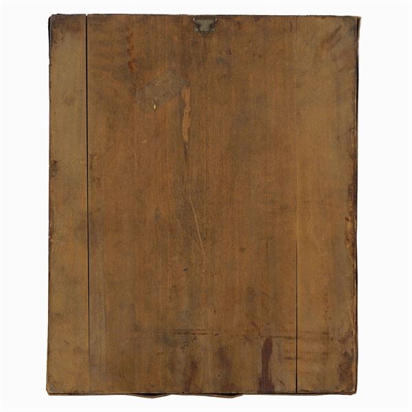 riza in argento parzialmente dorato, tempera su tavola, 27x22 cm.