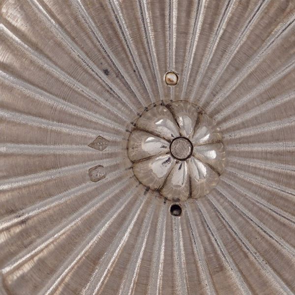 orafo Francois Durand Parigi, corpo liscio, baccellato e cesellato con motivi floreali e vegetali, base completa di scaldino composta da quattro sostegni di linea sagomata con piedi ferini, 42x36x23 cm., peso 3422 gr.