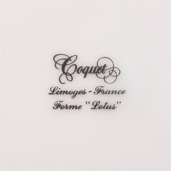 modello "Lotus" forma ottagonale, marchio sotto la base, composto da 24 piatti piani, 12 piatti fondi, 15 piatti da frutta, una zuppiera, una salsiera con piattino, 2 insalatiere, 4 piatti da portata misure diverse, una raviera, 12 tazzine da caffè con piattini