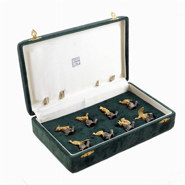 orafo Bartolozzi Firenze, corpi cesellati a foggia di animali, entro custodia in velluto, h. massima 4,5 cm., peso 147 gr.