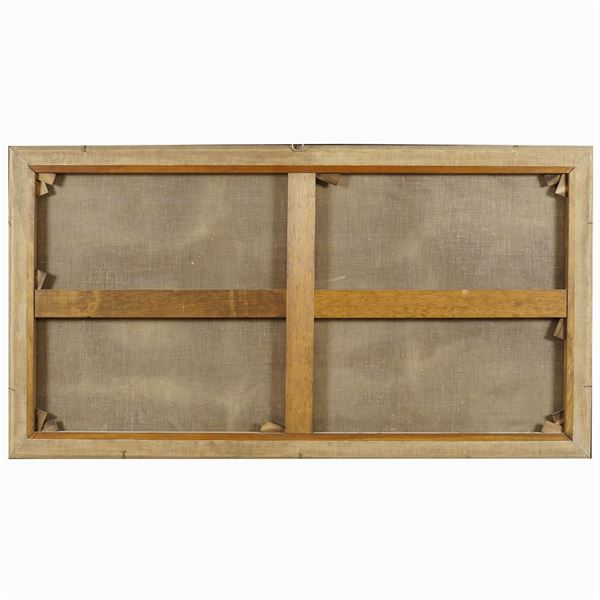 "Veduta della campagna romana", olio su tela, firmato in basso a destra, entro cornice in legno dorato, 79x150 cm.