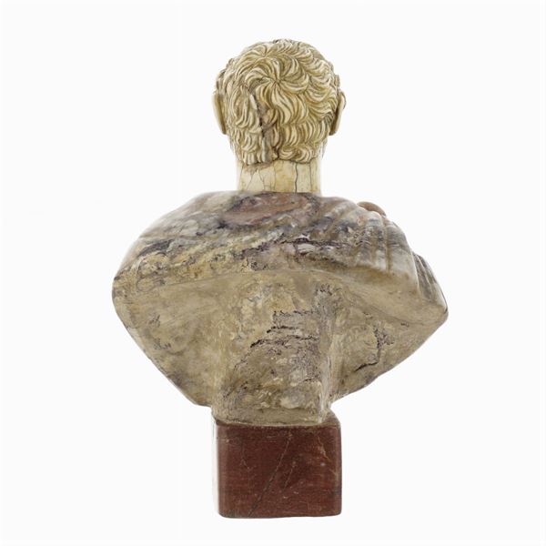 raffigurante "Imperatore romano", poggiante su base quadrata in marmo rosso, h. 19 cm.