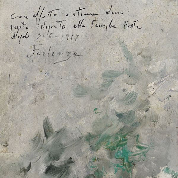 "Fanciulle nel giardino", 1917, olio su cartoncino, firmato, datato e dedica in alto a sinistra, entro cornice