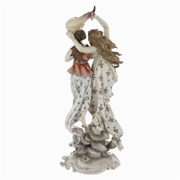 raffigurante "Allegoria dell'Abbondanza", base a rocailles, lievi difetti, h. 54 cm.