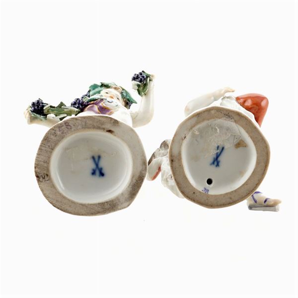 raffiguranti "Allegoria dell'Inverno" e "Allegoria dell'Autunno", marchi sotto le basi, lievi mancanze, h. 14 cm.