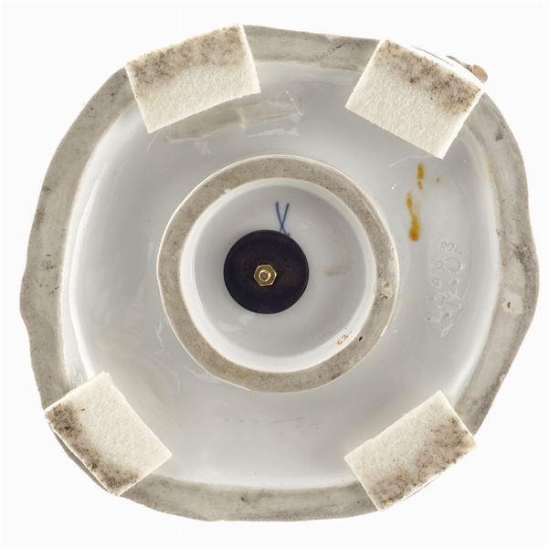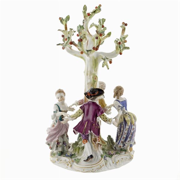 raffigurante "Girotondo di bambini intorno ad un albero di ciliegie", base sagomata e decorata con motivi a rocailles, marchio sotto la base, lievi mancanze, h. 32 cm.