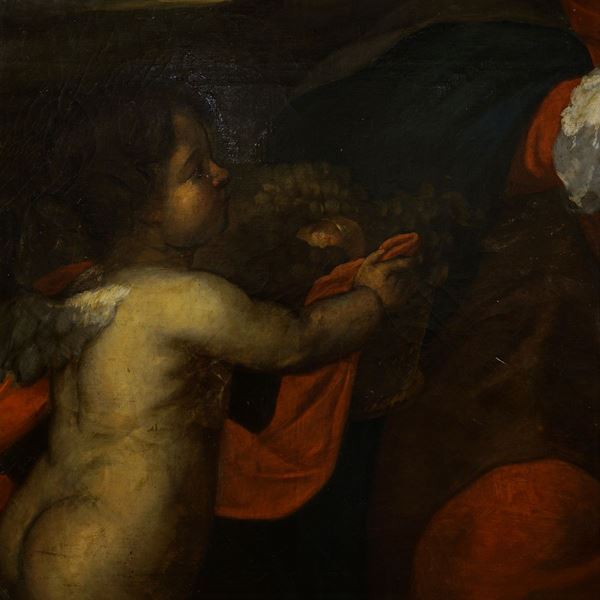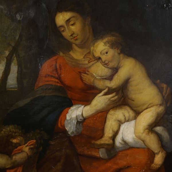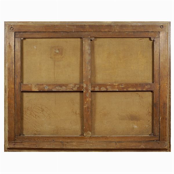 "Sacra Famiglia", olio su tela, entro cornice, 130x170 cm.