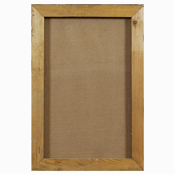 "Ritratto di fanciulla con mela", olio su tela, entro cornice, 60x41 cm.