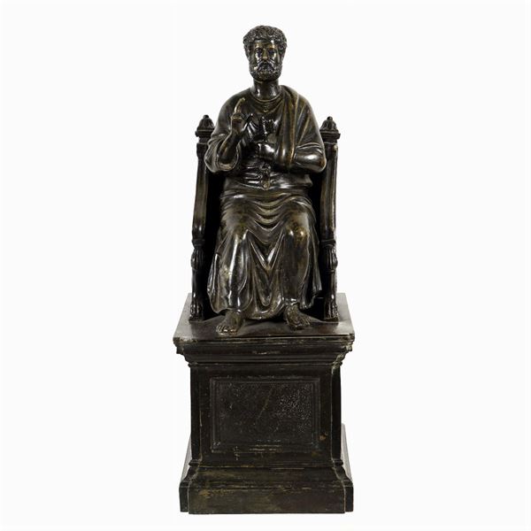raffigurante San Pietro in cattedra in posizione seduta, con una mano benedicente e l'altra con le chiavi del Regno di Dio, tratta dall'originale di Arnolfo di Cambio del 1200 circa., 36x17x13,5 cm.