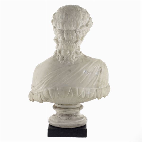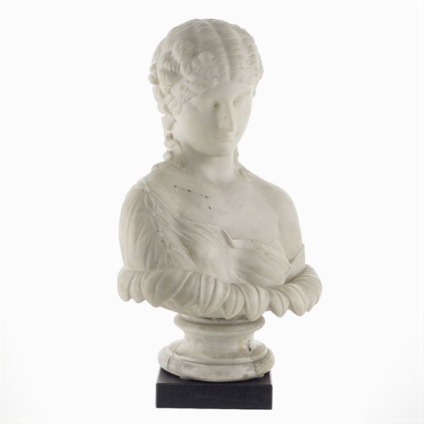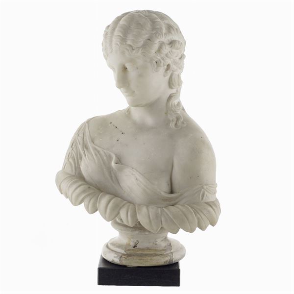 raffigurante "Busto di fanciulla", poggiante su base circolare, restauri, 44x29x18 cm.