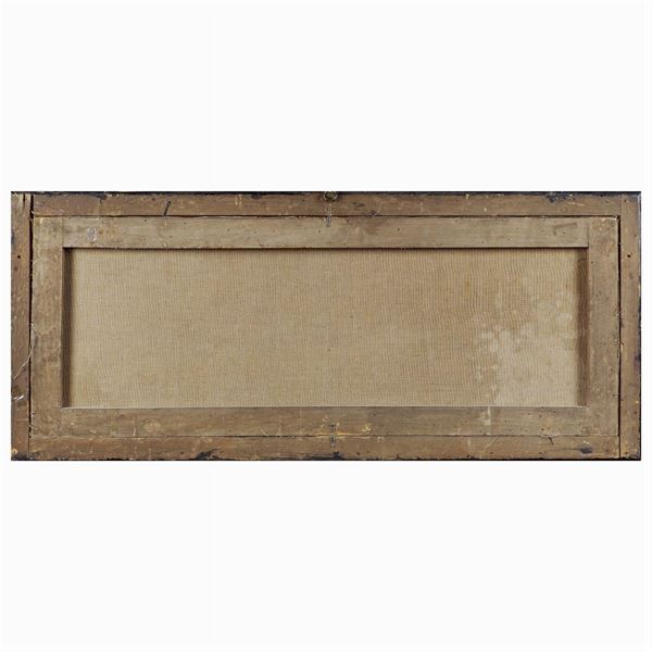 "Veduta di Napoli", olio su tela, entro cornice, 38,5x104 cm.