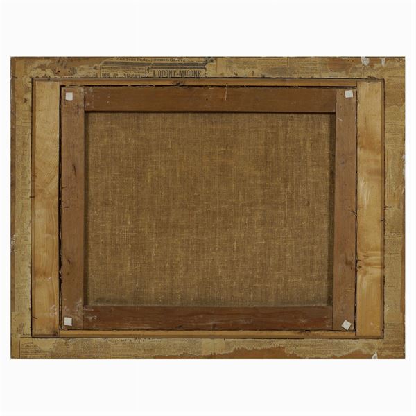 "Marina di Napoli con Palazzo Donn'Anna", olio su tela, entro cornice in legno dorato, 52x62 cm.