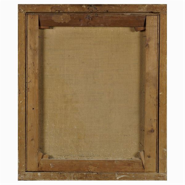 "Vaso di fiori", olio su tela, entro cornice in legno dorato., 74,5x63 cm.