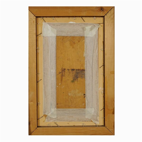 "Veduta di Positano", olio su tavoletta, firmato in basso a destra, entro cornice, 30x15 cm.