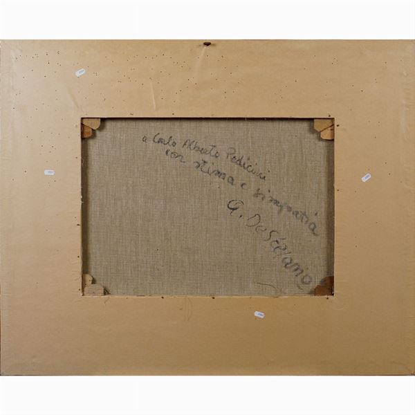 "Le tentazioni del cardinale", 1973, olio su tela, firma e data in alto a sinistra e con dedica sul retro, entro cornice, 61x80 cm.