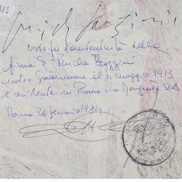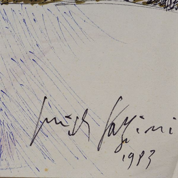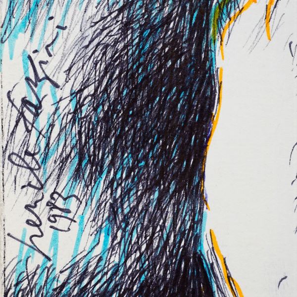 "Senza titolo", cinque disegni biro e pennarelli su carta, cinque firmati, di cui quattro autenticati, misure diverse, di cui il più grande 25x18 cm.