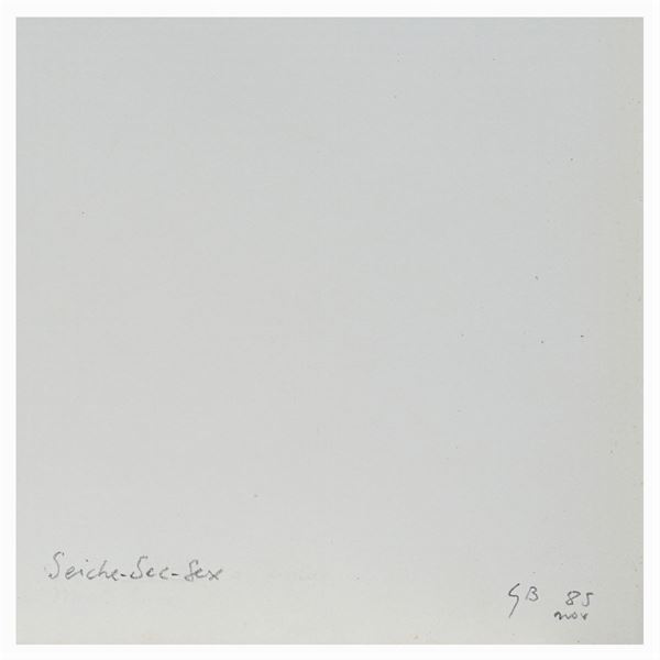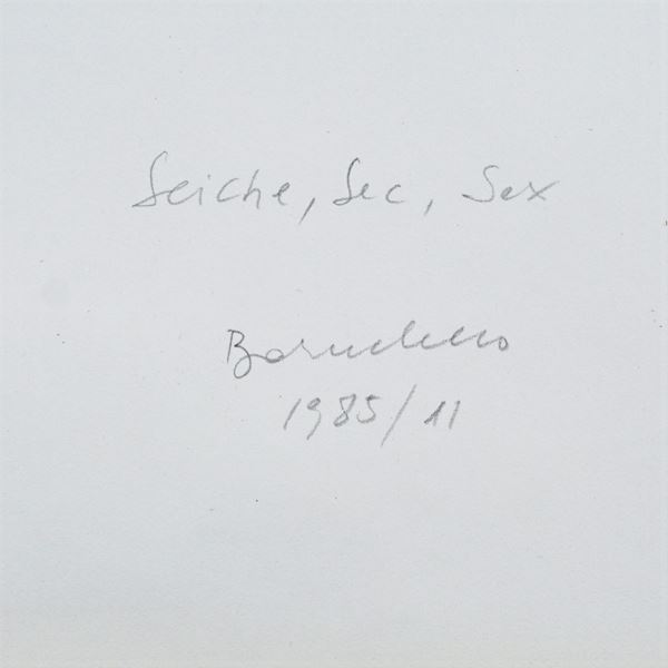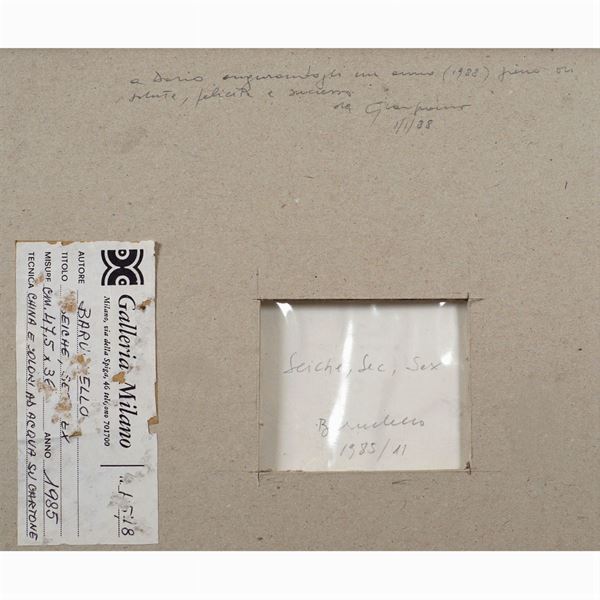 "Seiche, Sec, Sex", 1985, china a colori ad acqua su cartone, siglata, datata "GB 85" e titolata in basso a destra; datata, titolata, dedicata e firmata sul retro, entro cornice