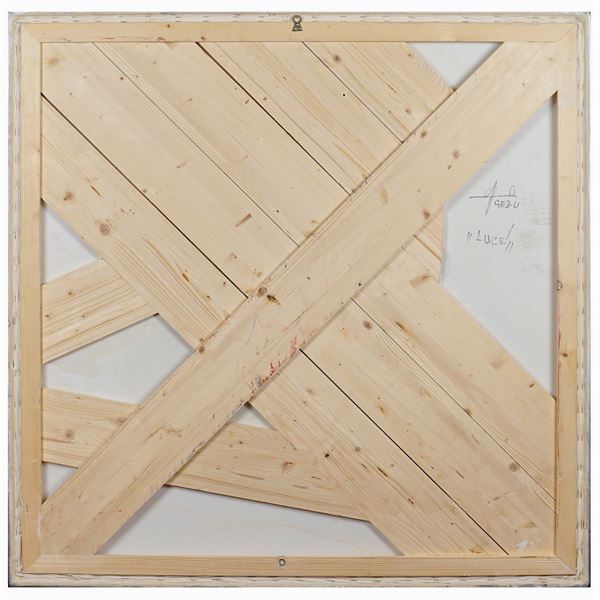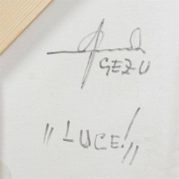 "GEZU- Luce", acrilico su tela estroflessa, firmata e titolata sul retro, autentica dell'artista su fotografia, 120x120 cm.