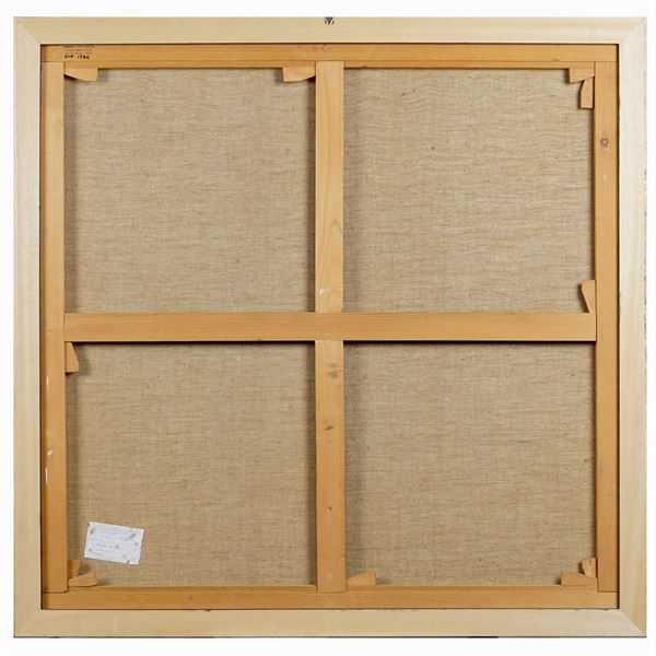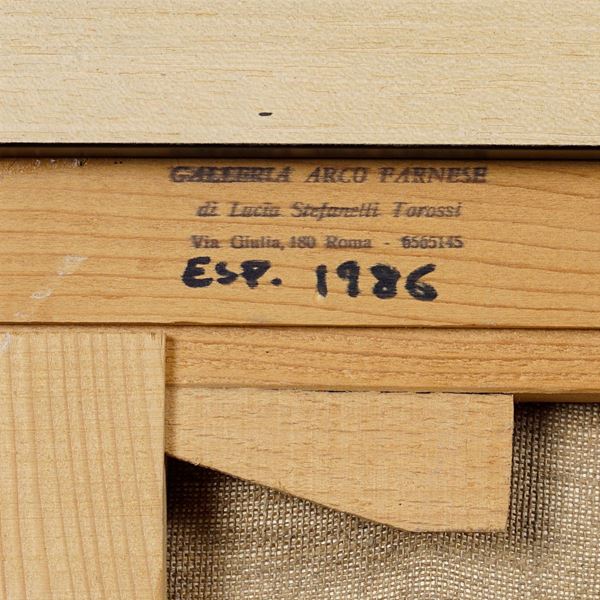 "Senza titolo", fine anni 70, tecnica mista su tela, firmato "Schifano" in basso a destra, entro cornice. Opera archiviata presso l'Archvio Mario Schifano Roma, con il n. 03210160625, come autentica su fotografia in data 11 luglio 2016 e presso la Fondazione Mario Schifano, Roma con il n. 73-78, come da autentica su fotografia in data 28 maggio 2003. Provenienza: Galleria Arco Farnese, Roma, collezione privata, Roma Bibliografia: Mario Schifano, "Archivio delle opere di Mario Schifano catalogate presso la Fondazione M.S. Multistudio opere su tela 1956 -1982", volume A) I° n.373-78/395, pag.224 , 103x105 cm.