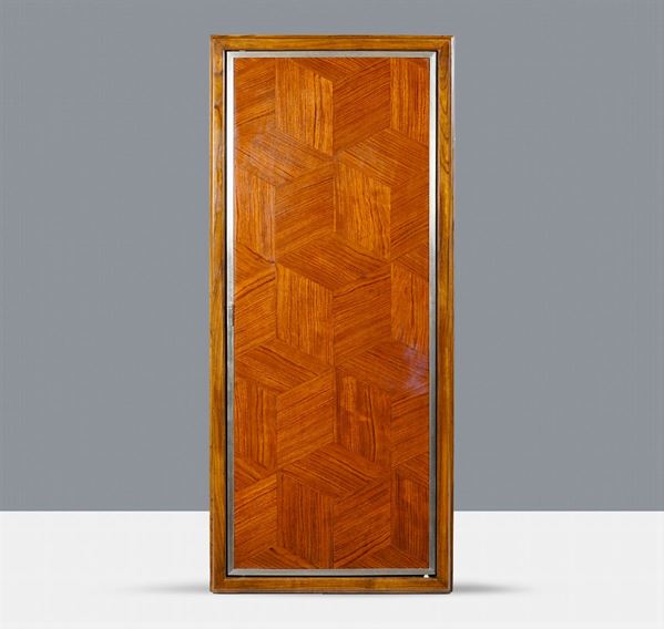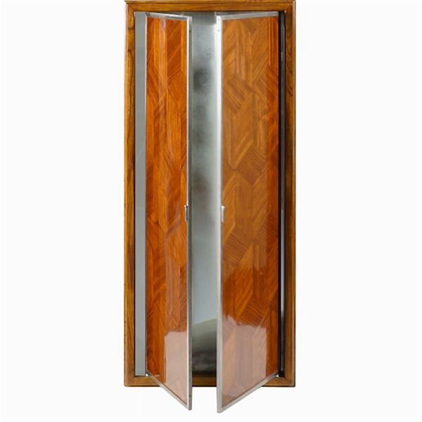 specchio a tre ante in noce e metallo, specchi firmati internamente S.A. Luigi Fontana & Co, Milano, 135x59x6 cm. (chiuso)