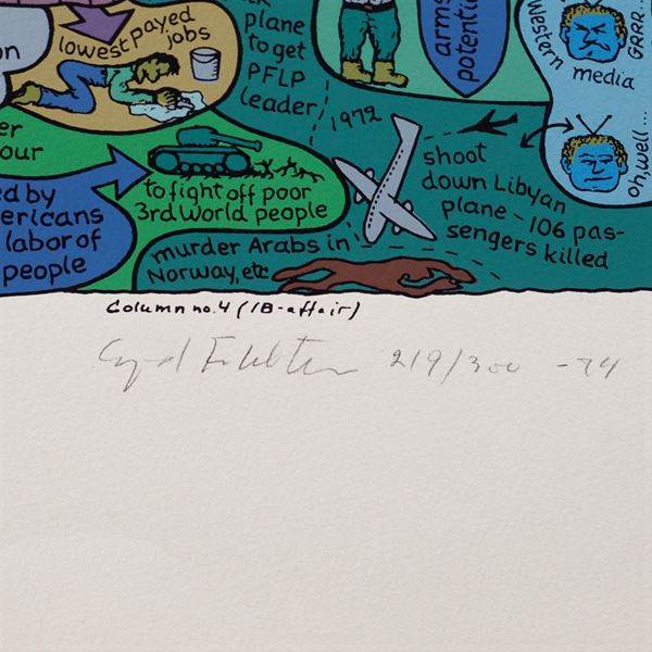 "Column no. 4 (IB-affair)", 1974, serigrafia a colori su carta Fabriano, es. 219/300, firmata in basso a destra, timbro a secco "Printed by Domberger Stuttgart" in basso a sinistra, 75,6x56,3 cm.