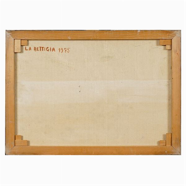 "La bettigia", 1975, olio su tela, firmato e datato in basso a destra, 50x70 cm.