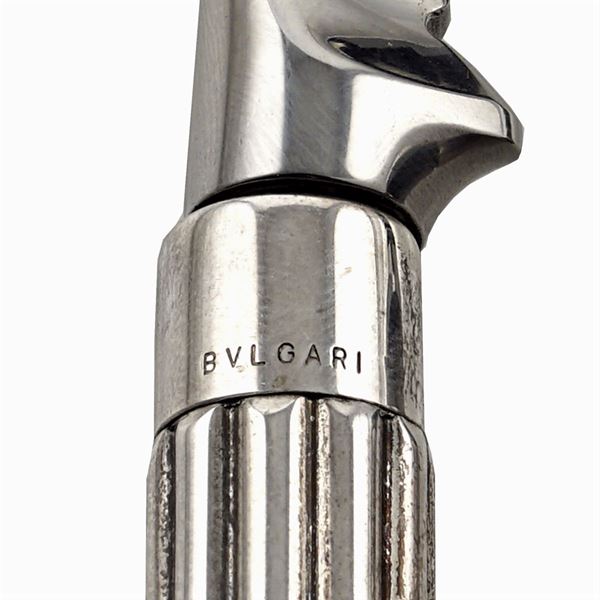 realizzata in acciaio inox, manici in argento, entro custodia, h. 17 cm.
