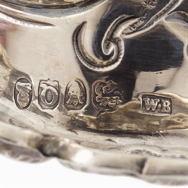 orafo William Bennett, corpi sbalzati traforati e cesellati con motivi floreali e vegetali, lievi difetti, 15x27x22 cm., peso 1010 gr.