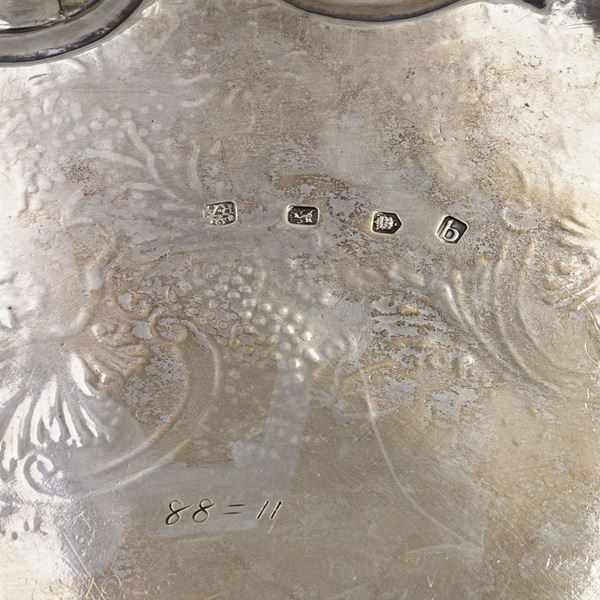 orafo Robert Abercromby, corpo smerlato ed inciso con motivi floreali e vegetali, poggiante su tre piedini a riccio, 5x46 cm. , peso 2710 gr.